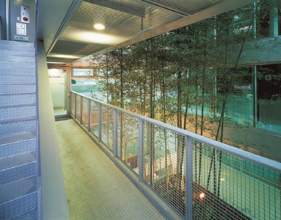 Moreover, the facade of the building intends a 'screen' as a film that controls the light and the view to the transparent glass box toward the road.