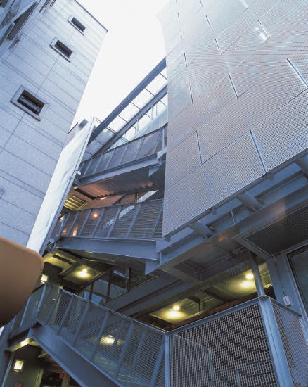 The multi-functional architecture which contains offices, a cafe on the first floor a photograph studio in the basement, a detached house on the top floor and the others are endowed a concept of 'single building' as a 'village' where every functional house is gathered.