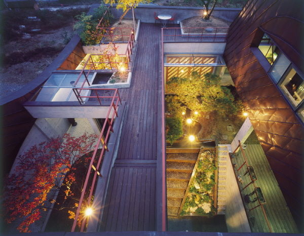 외부적으로는 건축의 옥상부를 모두 조경화함으로써 지하에서 지상, 각층 옥상레벨까지 크고 작은 서로 다른 공간성의 여러 마당이 연속적으로 만들어내는 드라마적 외부공간은 역동적인 내부공간 그리고 주변자연의 풍경과 복합적으로 연계되어 전개됨으로서, 풍요로운 공간적 이야기를 구성하고 있다.