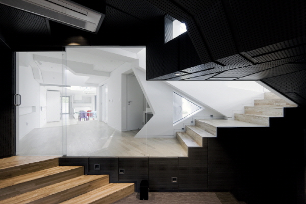 By adapting topography of existing site, lower Madang, higher Madang, various skip-floored inner spaces were designed as different level each other and they produced interesting route of stroll in every place of this house.