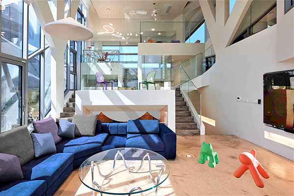 바다를 바라보는 극장식 거실공간 속에 가족구성원들의 서재, 가족실, 바 등의 공적기능을 분산배치하고 각 개인의 침실을 가기 위한 동선을 이 극장식 거실 공간을 필연적으로 경유하게 하여, 이 수직적 거실 공간을 바다를 보는 전망대이며 가족들의 만남이 이루어지는 친교적 장소로 계획했다.